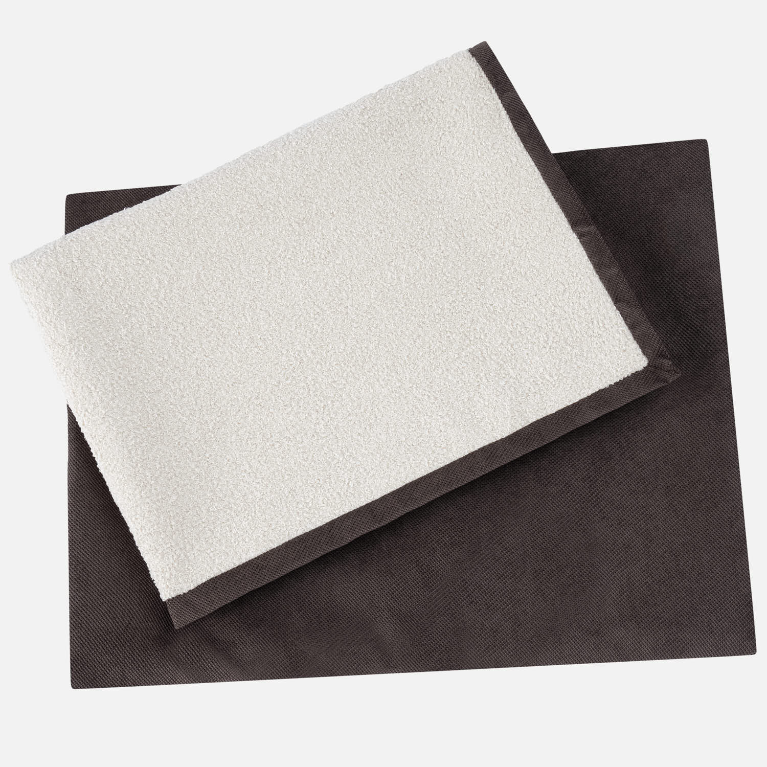 Omkeerbaar bruin en beige knuffeldoekje met twee verschillende stofzijden. De perfecte aanvulling op het Wood hondenbed.